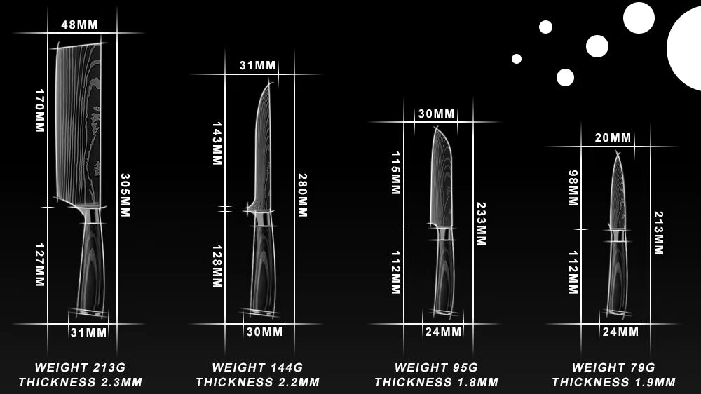 Van het precisiewerk met het schilmesje tot het krachtige hakken met het 8-inch koksmes – deze set is gemaakt voor wie graag met kwaliteit werkt. Licht in de hand, bestand tegen corrosie, en ontworpen om jarenlang mee te gaan.