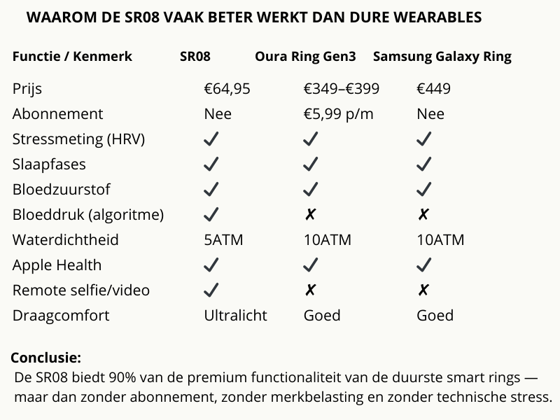 De SR08 gebruikt deze data om jouw stress-score en ontspanningsmomenten automatisch te berekenen.